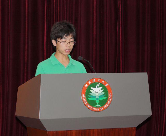 榮獲北京理工大學優秀畢業生榮譽稱號的馮玖江同學根據自己大學生活的體會對學弟學妹提出了幾點建議:要學會理解和包容、做人要真誠;珍惜時光、努力學習;多關注國家的發展;要用積極的心態來面對自己的大學生活。他的發言贏得了新生一陣陣熱烈的掌聲。