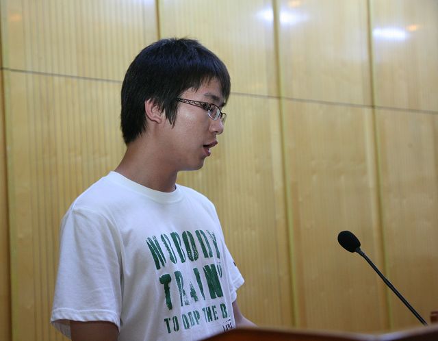 學院在讀老生代表陸晨龍同學向新同學講述自己通過這個項目的收獲并希望新同學們能踴躍參加學生會,壯大學院分團委、學生會的隊伍。通過這個項目的學習增長了才干和見識,切身體會到兩校優良的教學資源帶給他的益處,他鼓勵新同學們好好珍惜。