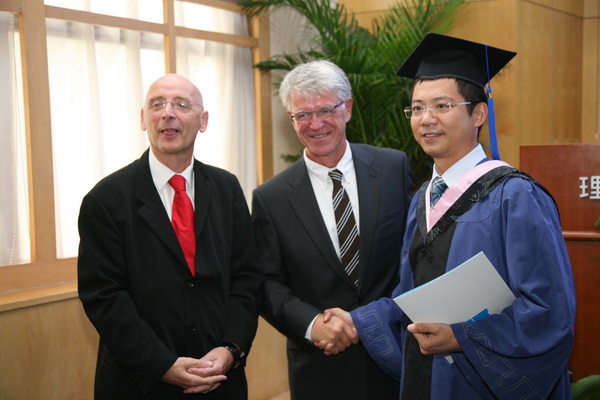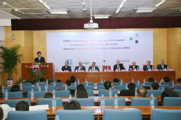 2012年9月7日下午,在我校國際教育交流大廈三層報(bào)告廳隆重舉行我校與德國康斯坦斯應(yīng)用科學(xué)大學(xué)合作為國際著名奔馳汽車生產(chǎn)商戴姆勒公司舉辦的EMBA項(xiàng)目第四期畢業(yè)典禮暨第六期新生開學(xué)典禮。出席典禮的嘉賓有:北京理工大學(xué)副校長孫逢春教授、戴姆勒東北亞地區(qū)首席財(cái)務(wù)官Helmut Ruhl先生、戴姆勒東北亞投資有限公司執(zhí)行副總裁Matthias Zeuch先生、因戈?duì)査顾貞?yīng)用科學(xué)大學(xué)Thomas Doyé教授、康斯坦斯應(yīng)用科學(xué)大學(xué)Josef Wieland教授、康斯坦斯應(yīng)用科學(xué)大學(xué)繼續(xù)教育部部長Roland Luxemburger先生、我校國際教育合作處王慶林處長、國際教育合作學(xué)院梅文博院長、羅佳書記、第四期全體學(xué)員和第六期新學(xué)員。典禮由梅文博教授主持。