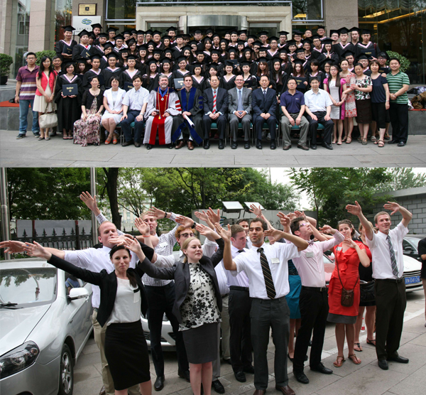 典禮儀式結(jié)束后,領(lǐng)導(dǎo)、嘉賓與全體畢業(yè)生合影留念。來訪的猶他州立大學(xué)十六名學(xué)生帶領(lǐng)畢業(yè)生們唱起了猶他州立大學(xué)校歌,祝賀同學(xué)們成為猶他州立大學(xué)的畢業(yè)生,現(xiàn)場(chǎng)氣氛隆重而熱烈。