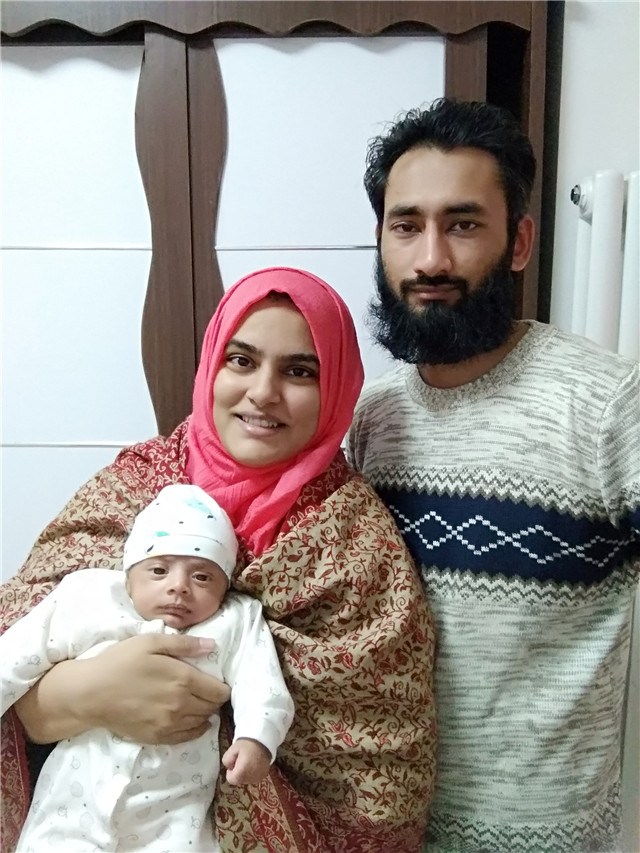 古蘭和姿薇夫婦均為我校生命學院2016級巴基斯坦博士留學生,屈鋒教授是他們的導師。2017年9月2日,正值周六晚上,身懷六甲的姿薇突感不適,緊急到良鄉(xiāng)醫(yī)院就診。產(chǎn)科醫(yī)生診斷其情況危急將要早產(chǎn),立即采取了緊急救治措施。經(jīng)產(chǎn)科醫(yī)生護士的緊張搶救,嬰兒順利出生。但嬰兒因早產(chǎn)又出現(xiàn)突發(fā)癥狀,而且孩子是罕見的Rh陰性血型(俗稱熊貓血),需緊急轉(zhuǎn)院治療。醫(yī)院領導及相關人員立刻啟動應急機制,聯(lián)系各方,協(xié)調(diào)轉(zhuǎn)院事宜。因事出突然,學生夫婦沒有準備,醫(yī)院心懷大愛,院領導親自指示,急病人所急,為他們先行墊付了轉(zhuǎn)院住院押金,使得嬰兒第一時間得到最佳救治,母子平安。