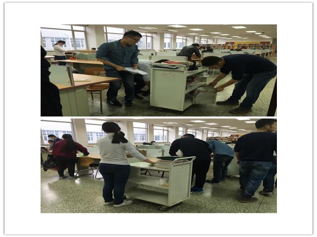 圖書館是全校讀者獲取知識的公共空間,是師生共享的公共資源,但是因?yàn)榭佳泻推谀?fù)習(xí),利用物品占座的現(xiàn)象嚴(yán)重且普遍,占座物品擠壓了大家的學(xué)習(xí)空間,不僅影響了圖書館的閱覽秩序,也損害了其他讀者正當(dāng)?shù)臋?quán)利。為維護(hù)圖書館良好的學(xué)習(xí)秩序,保障全體讀者的正當(dāng)權(quán)益,使廣大讀者能夠公平、公正、合理、有效地利用圖書館的空間資源,讀者服務(wù)部全體員工利用周末兩天加班加點(diǎn)持續(xù)五天對圖書館一至四層全部桌椅物品進(jìn)行整頓。