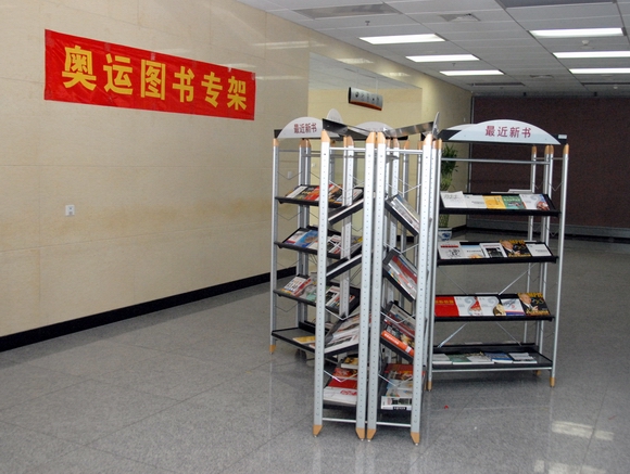 根據(jù)我校有奧運(yùn)場館和殘奧會賽事的特點(diǎn),中關(guān)村校區(qū)圖書館于近日在圖書館一層大廳設(shè)立了“奧運(yùn)圖書專架”,集中存放了奧運(yùn)圖書百余種,主要在奧運(yùn)期間為我校奧運(yùn)場館運(yùn)行相關(guān)人員和奧運(yùn)志愿者提供文獻(xiàn)服務(wù)。