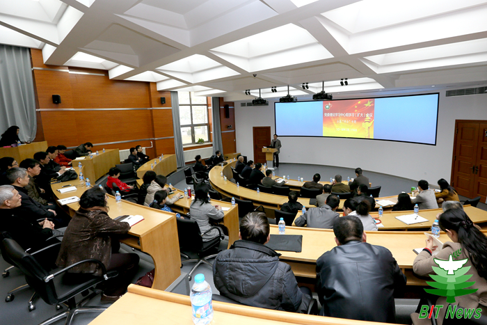 3月25日上午,北理工黨委理論學習中心組在主樓133報告廳召開擴大會議,學習傳達全國“兩會”精神。黨委理論學習中心組成員,全國政協委員、各基層黨委書記、民主黨派代表、黨外人士代表參加了會議。會議由張煒書記主持。