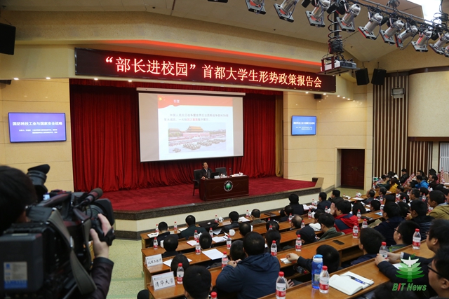 參加本次報告會的有:國防科工局綜合司司長牟相軍,工業和信息化部人事教育司副司長高東升,北京理工大學黨委書記張煒、常務副校長楊賓、副校長楊樹興、紀委書記楊志宏、副校長陳杰、校黨委副書記副校長項昌樂、校長助理郝志強,校學術委員會委員、學部委員、機關正處級干部,以及清華大學、北京航空航天大學、北京交通大學、北京郵電大學、北京化工大學、北方工業大學、北京理工大學等高校學生代表。