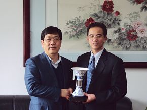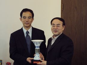 湖南大學校長趙躍宇、副校長陳收,中南大學校長張堯學、副校長李桂源分別率領兩校相關部門負責人出席交流座談會,并與我?;ベ浖o念品。