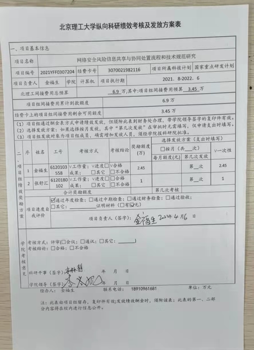 項目2021YFF0307204績效發放公示