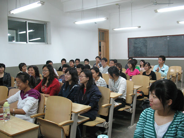 為了解學生目前在山東大學的學習和生活情況,2008年10月16日,教務處韓寶玲副處長,人文學院張紅峻院長、宋桂芝教學副院長帶領教務處及人文學院法學、經濟學教研室負責教師一行,赴山東大學看望我校訪學學生。10月16日晚在山東大學東校區公教樓105教室,參加訪學項目的學生與老師召開了見面會。