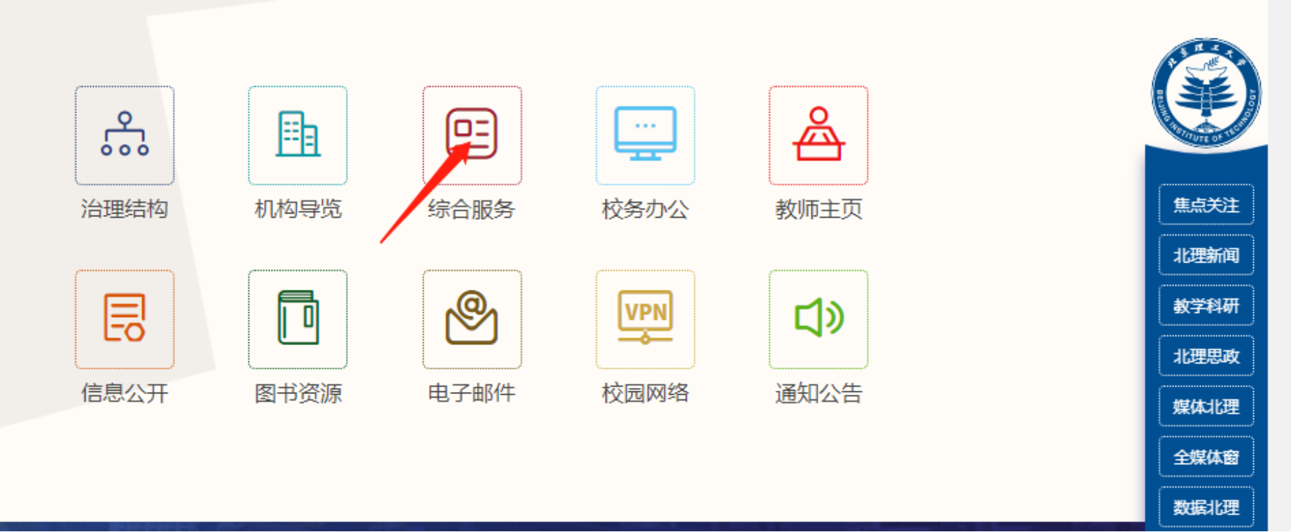校園網首頁進入“綜合服務”