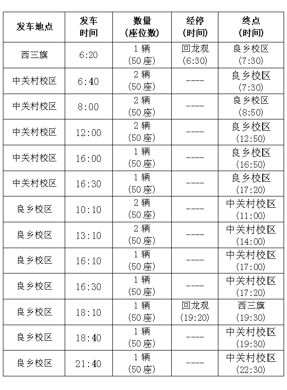 > 2008年下半年良鄉校區班車運行時間表(2008.10.18修訂)