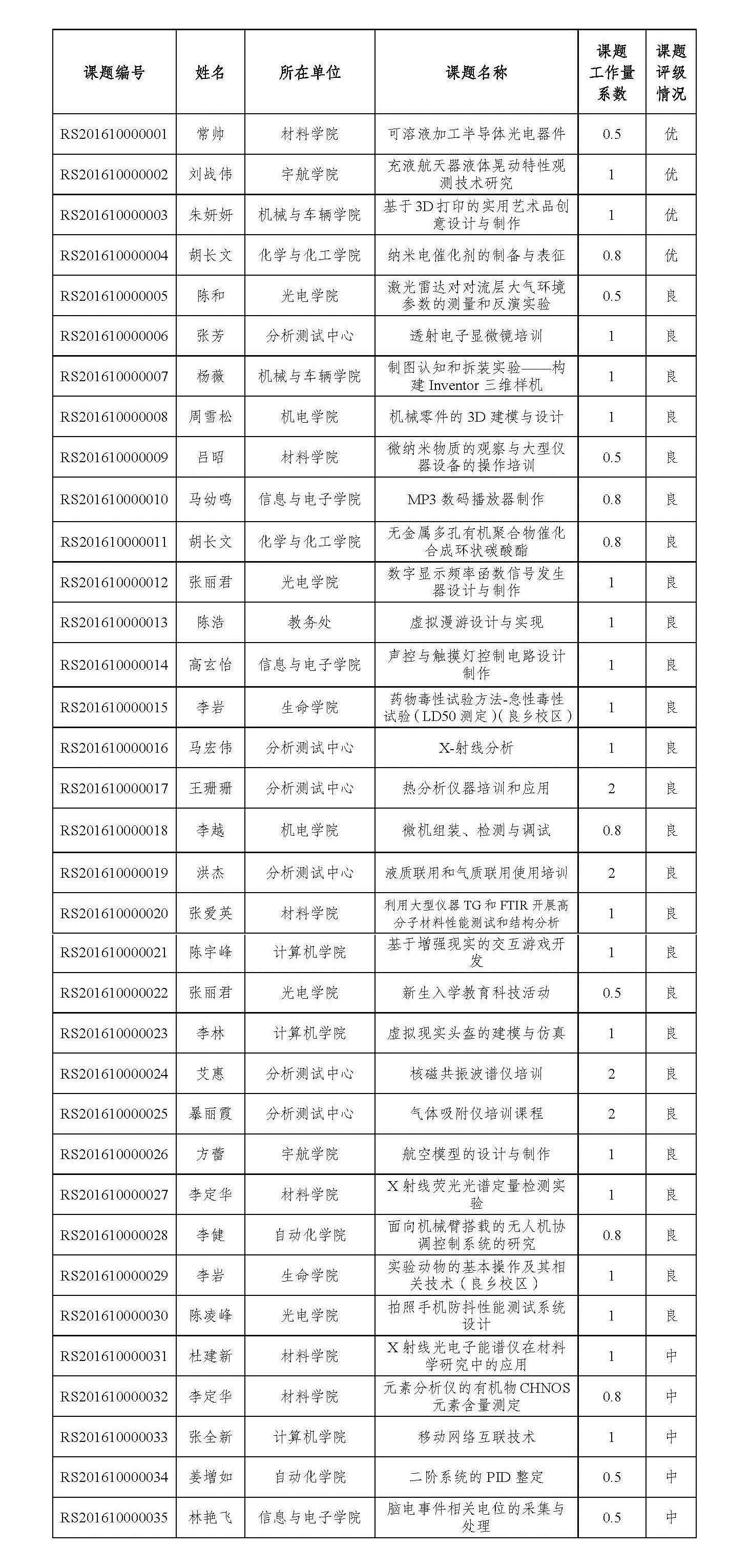 詳見附件2:關于2016-2017學年第一學期(2016年秋季)實驗室開放任選課題立項清單