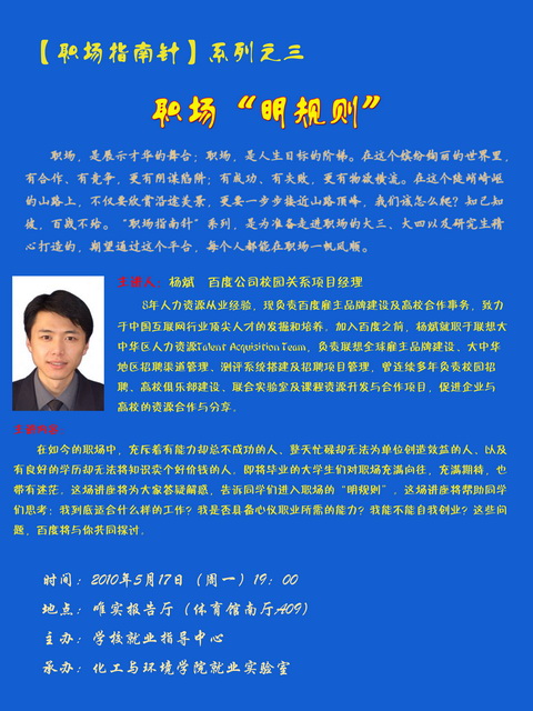 每年都會出現因畢業生不了解戶口、檔案等相關知識而給自己造成無法挽回的損失的情況,例如有人的檔案成了“死檔”,有人的戶口成了“口袋戶口”。離校派遣在即,學校就業辦公室特別為畢業生同學舉辦關于就業派遣知識的專題輔導講座。