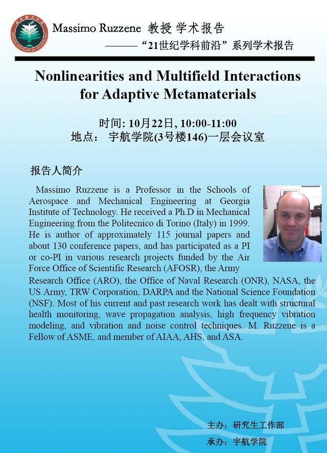 宇航學(xué)院10月22日學(xué)術(shù)報告預(yù)告