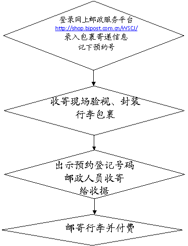 2、只有通過網上服務平臺登記申請寄遞的包裹,可由郵局打印包裹單,不必再手工填寫包裹單,您完成包裹驗視封裝及包面名址書寫后,只需提供預約號即可交寄,節省您填單子的時間。