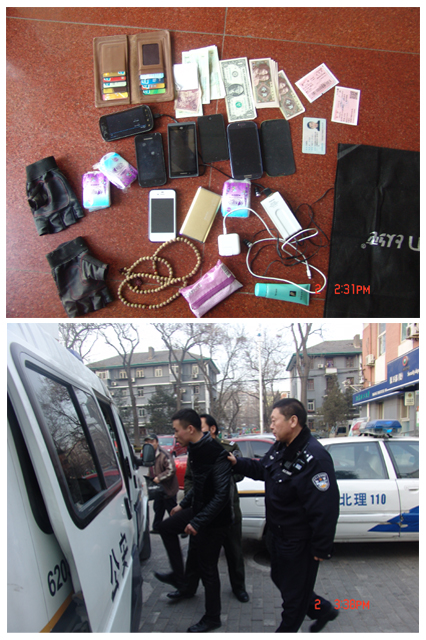 2014年1月2日下午13時許,保衛處值班室接后勤學管中心報案稱:大學生1號公寓剛剛發生一起入室盜竊案,接報后治安科工作人員和保安員迅速趕到現場布控,各位公寓值班員按照應急預案果斷封閉該樓各出入口,通知監控中心調取現場監控錄像。通過樓內、外監控錄像確認盜竊嫌疑人還在樓內,治安科工作人員帶領保安員、學管中心工作人員對大學生1號公寓樓內廁所、水房進行徹底清查,加大聲勢,迫使嫌疑人于14時左右冒充學生欲逃出學生公寓,被學管中心和保衛處工作人員當場抓獲。