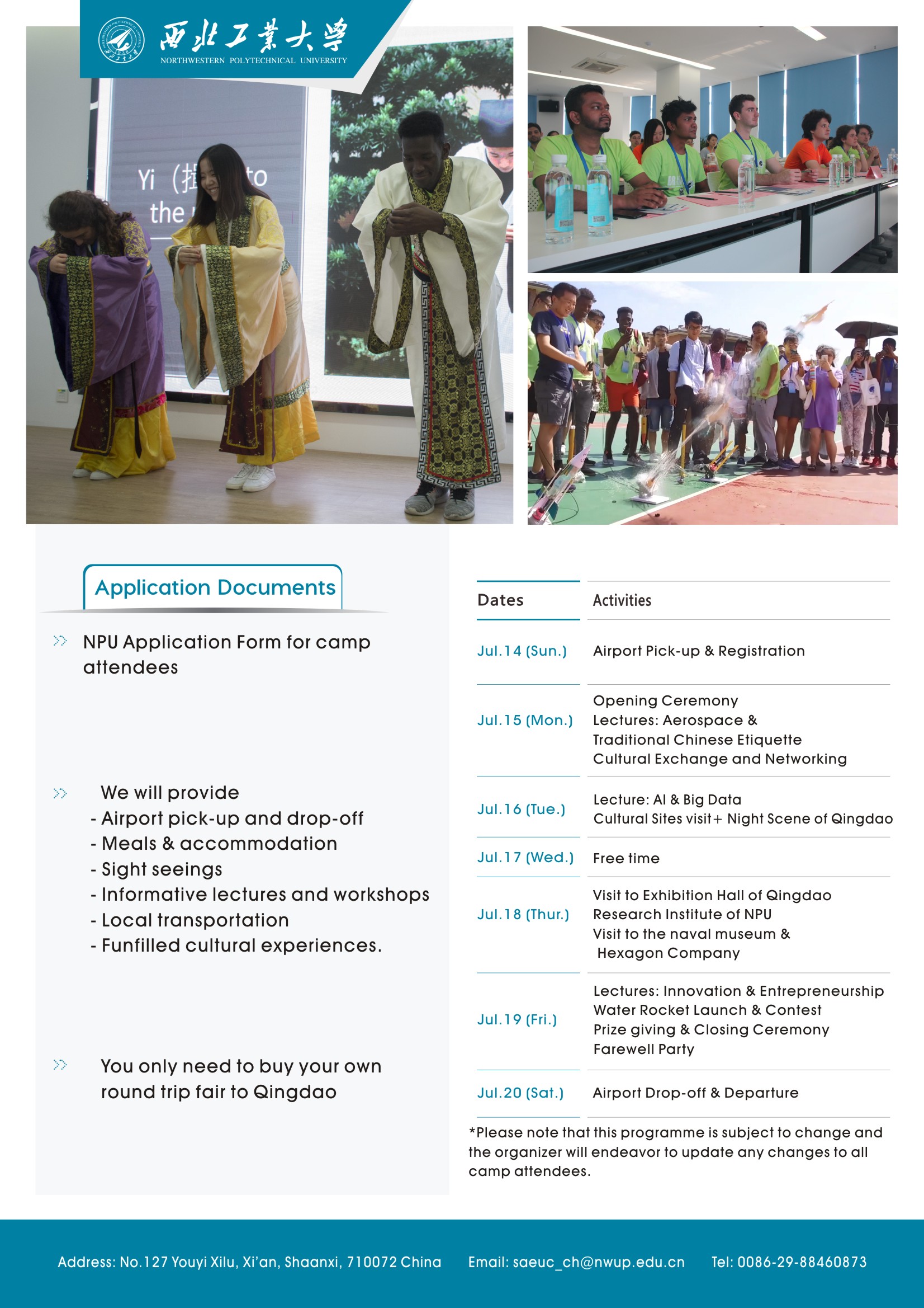 費用:西北工業大學負責夏令營期間在青島的費用;北理工國際處負擔北京-青島的往返火車票