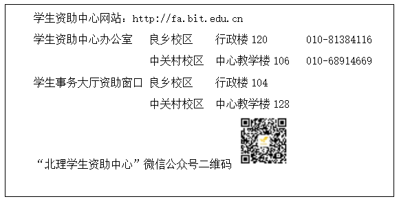 請申請校園地助學貸款和辦理生源地貸款的同學注意時間節(jié)點。相關信息會在學生資助中心網站、“北理學生資助中心”微信公眾號上公布。