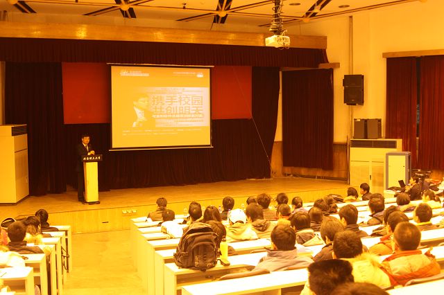 2009年12月14日晚,中國(guó)青年創(chuàng)業(yè)國(guó)際計(jì)劃(YBC)青年創(chuàng)業(yè)導(dǎo)師、金和軟件總裁欒潤(rùn)峰教授與北理工學(xué)子進(jìn)行面對(duì)面的交流,主題為“懷揣夢(mèng)想、踏實(shí)上路”的講座拉開了就業(yè)、創(chuàng)業(yè)論壇的序幕。軟件學(xué)院副書記、副院長(zhǎng)陳旵明、學(xué)院就業(yè)辦公室柳文艷老師出席了本次講座。