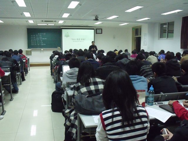 其次,劉博聯老師指出,知心需要每位同學了解自身目前現狀,特別是自身的學習成績;知心,關心還需要關心身邊的同學,特別是他們將來畢業出路的選擇;我愛,需要愛集體,愛關心幫助過自己的同學和老師;愛我,需要保持一顆平常心,珍惜生命,注意安全。