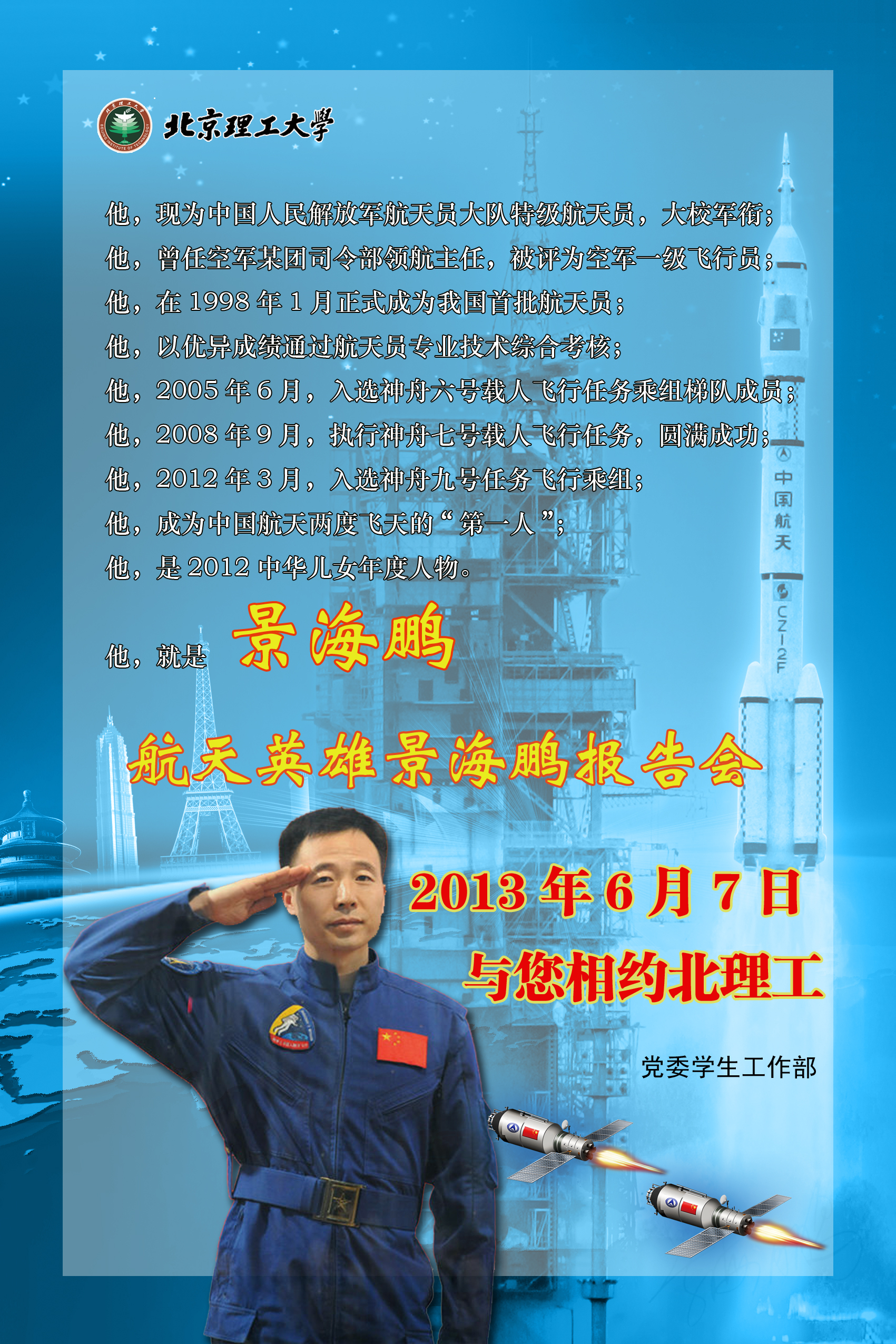 6月7日航天英雄景海鵬報告會預告