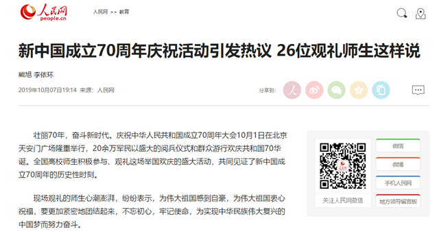 新中國成立70周年慶?;顒右l熱議 26位觀禮師生這樣說