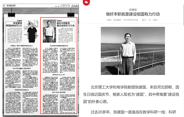北京理工大學機電學院教授張建國,來自河北邯鄲,因生日臨近國慶節,被家人取名為“建國”,其中寄寓著“建設祖國”的樸素心愿。