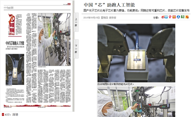 2017年,白冰開始創業,組建了全球第二個光子人工智能芯片研究團隊。他們制作的光子芯片——硅光AI芯片,有望擺脫對國外高制程光刻機的依賴,成為我國在芯片領域換道超車的核心技術。