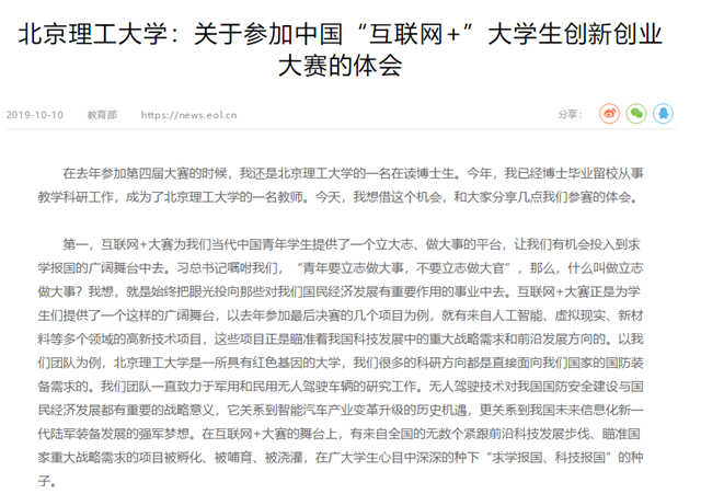 北京理工大學:關于參加中國“互聯網+”大學生創新創業大賽的體會