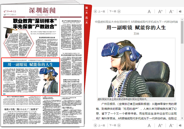 見證了中國VR、AR技術發展歷程的王涌天認為,不妨把信息呈現、交互技術發展過程,試想為“屏幕”的進化過程。人們使用的第一塊屏是電影銀幕。電視屏緊隨其后出現,打破了空間限制,可把影像帶回家。第三塊屏是手機屏,智能手機的推廣讓每個人與世界聯通。假設最后一塊屏是和人腦直接相連。“那么,VR頭盔、AR眼鏡可能是人類接觸的倒數第三、倒數第二塊屏。有了它們,人們就能丟掉手機,輕松上陣。”
