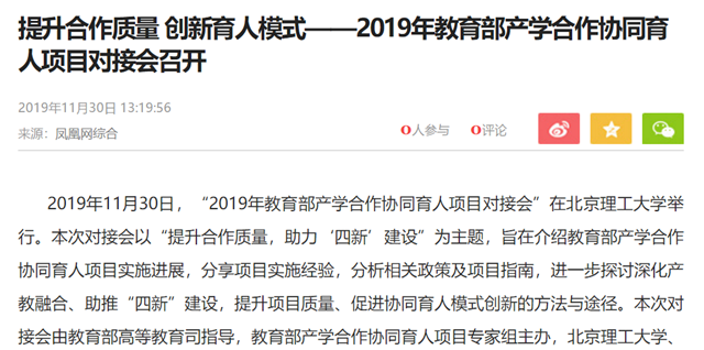 編輯:吳楠 審核:王征 閱讀次數(shù):原文標(biāo)題:提升合作質(zhì)量 創(chuàng)新育人模式——2019年教育部產(chǎn)學(xué)合作協(xié)同育人項目對接會召開