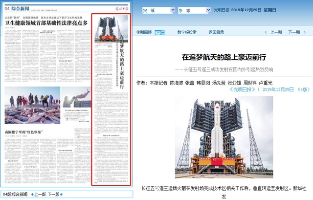 美國《國家評(píng)論》雜志認(rèn)為,在經(jīng)歷一系列挫折之后,中國掀開雄心勃勃太空計(jì)劃的新篇章;成功發(fā)射長征五號(hào)火箭標(biāo)志著中國今年的第34次太空發(fā)射的成功,中國成為今年實(shí)現(xiàn)太空發(fā)射最多的國家。俄羅斯塔斯社在其刊發(fā)的《中國發(fā)射最大的長征五號(hào)運(yùn)載火箭》中指出,中國正在積極推進(jìn)實(shí)現(xiàn)國家宇宙空間發(fā)展計(jì)劃,開發(fā)氣象、電信和導(dǎo)航衛(wèi)星以及月球探測(cè)技術(shù)。