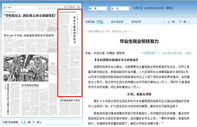 繼國務院常務會議提出,當前要更加注重穩就業特別是高校畢業生、農民工等重點群體就業后,教育部副部長翁鐵慧、人力資源和社會保障部副部長游鈞在2月28日舉行的國務院聯防聯控機制新聞發布會上介紹了相關政策的具體情況。翁鐵慧在會上表示,碩士研究生招生的規模比去年可能會增加18.9萬人,同時擴大普通高校專升本的規模,同比爭取增加32.2萬人。