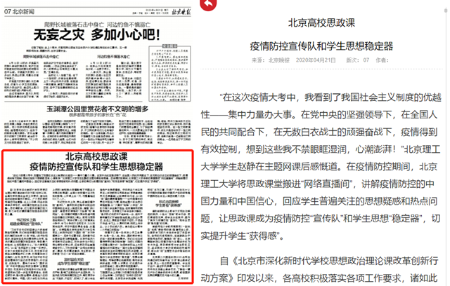 北京高校思政課 疫情防控宣傳隊(duì)和學(xué)生思想穩(wěn)定器