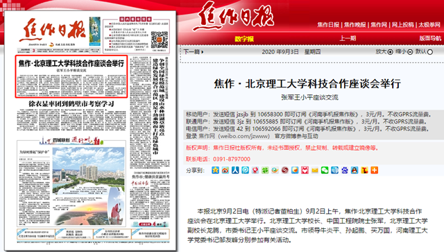 焦作·北京理工大學(xué)科技合作座談會(huì)舉行