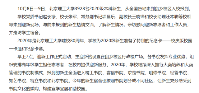 編輯:吳楠 審核:劉曉俏 閱讀次數:原文標題:北京理工大學喜迎2020級本科新生入校