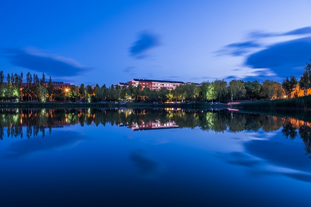 良鄉校區的點睛之筆莫屬北湖,水色天光,倒影迷離,墨色豐富,盡柔和之妙,呈氤氳之趣。這個獲得中國風景園林學會最高獎——“優秀園林綠化工程”金獎的“一湖之水”建設之初曾是蚊蠅紛飛、臭氣熏天的“垃圾大坑”,目前已成為學生休閑放松、集會交流的核心場所,不僅有小型的集會廣場,還有環湖步道,極大提升了新校區校園環境文化品位,將環境育人和文化建設落在實處。“環湖步道一圈正好1000米,每100米都有標記,學生們可以約定在‘紅色跑道的幾百米處見’”,李和章對北湖建設的細節如數家珍。