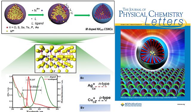 2017年8月,一篇題為《膠體納米晶的異價(jià)摻雜:陽離子交換提供摻雜發(fā)光和摻雜能級(jí)調(diào)控新途徑》( “Heterovalent doping in Colloidal Semiconductor Nanocrystals: Cation Exchange-Enabled New Accesses to Tuning Dopant Luminescence and Electronic Impurities”)的論文,以封面文章的形式,在知名物理化學(xué)學(xué)術(shù)期刊《美國物理化學(xué)快報(bào)(Journal of Physical Chemistry Letters)》發(fā)表,并受邀以視頻形式在美國化學(xué)會(huì)網(wǎng)站進(jìn)行專題報(bào)道。