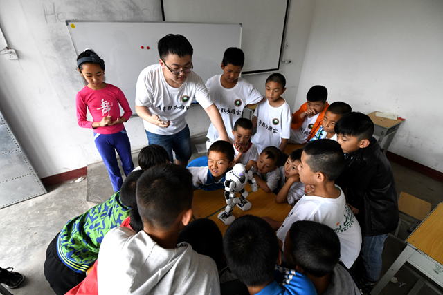 自動(dòng)化學(xué)院支教學(xué)生為孩子們講授機(jī)器人知識(shí)