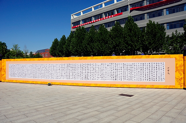 光明網(wǎng)教育訊 9月3日,北理工迎來(lái)了近3700名新生入學(xué)報(bào)到。在報(bào)到現(xiàn)場(chǎng),兩面分別印有《千字文》、《道德經(jīng)》全文的文化墻異常矚目。6名朗誦員從8點(diǎn)起循環(huán)誦讀這兩篇古文,朗讀聲飄揚(yáng)在整個(gè)校園中。