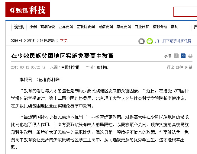 【媒體北理】在少數(shù)民族貧困地區(qū)實施免費高中教育