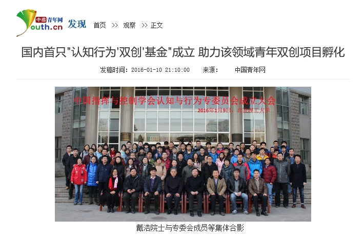 【中國青年網】國內首只認知行為'雙創'基金在北理工成立 助力該領域青年雙創項目孵化