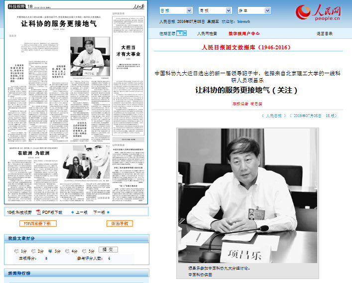 【人民日?qǐng)?bào)】來自北京理工大學(xué)的一線科研人員項(xiàng)昌樂 讓科協(xié)的服務(wù)更接地氣