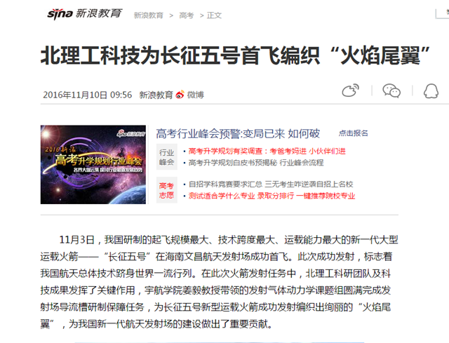 【新浪教育】北理工科技為長征五號首飛編織“火焰尾翼”
