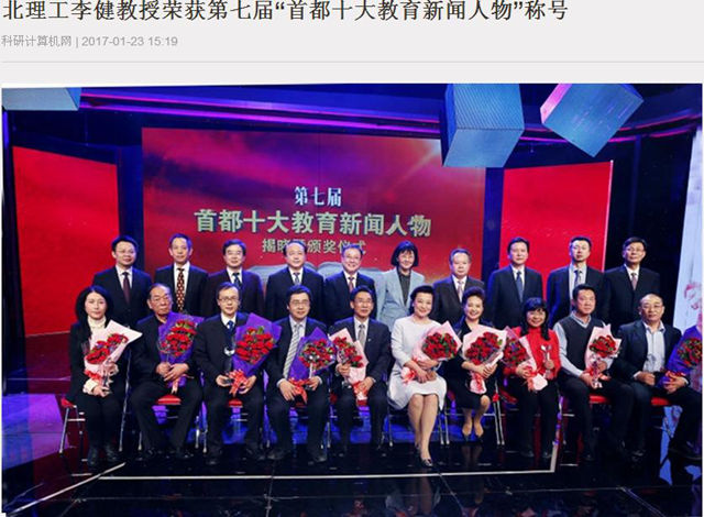 【科研計算機網微信公眾平臺】北理工李健教授榮獲第七屆“首都十大教育新聞人物”稱號