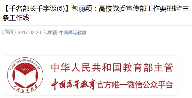 【中國(guó)高等教育】包麗穎:高校黨委宣傳部工作要把握“三條工作線”