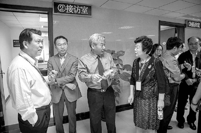 在來訪接待監控室,工作人員邊介紹,邊回放了前一天接待來訪人員在安檢中,查出一名來訪人員帶有管制刀具的情況。這樣的細節,讓前來參觀的全國人大代表深感接訪工作不容易、有危險。“要有一個機制,加強對接待人員人身安全的保護。”李亞蘭代表說。