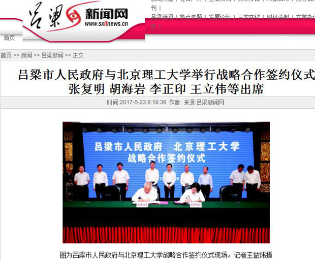 【呂梁新聞網】北理工與呂梁市人民政府舉行戰略合作簽約儀式