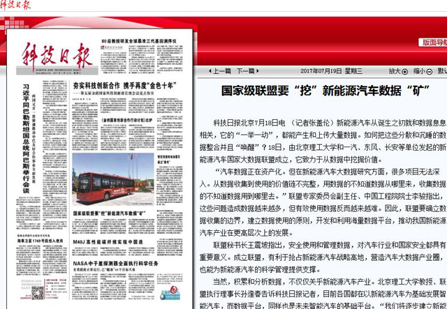 【中國科學報】國內首家新能源汽車國家大數據聯盟成立