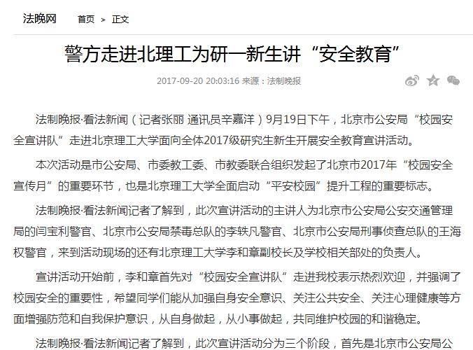 【法晚網(wǎng)】北理工開學(xué)初始,“安全教育”先行