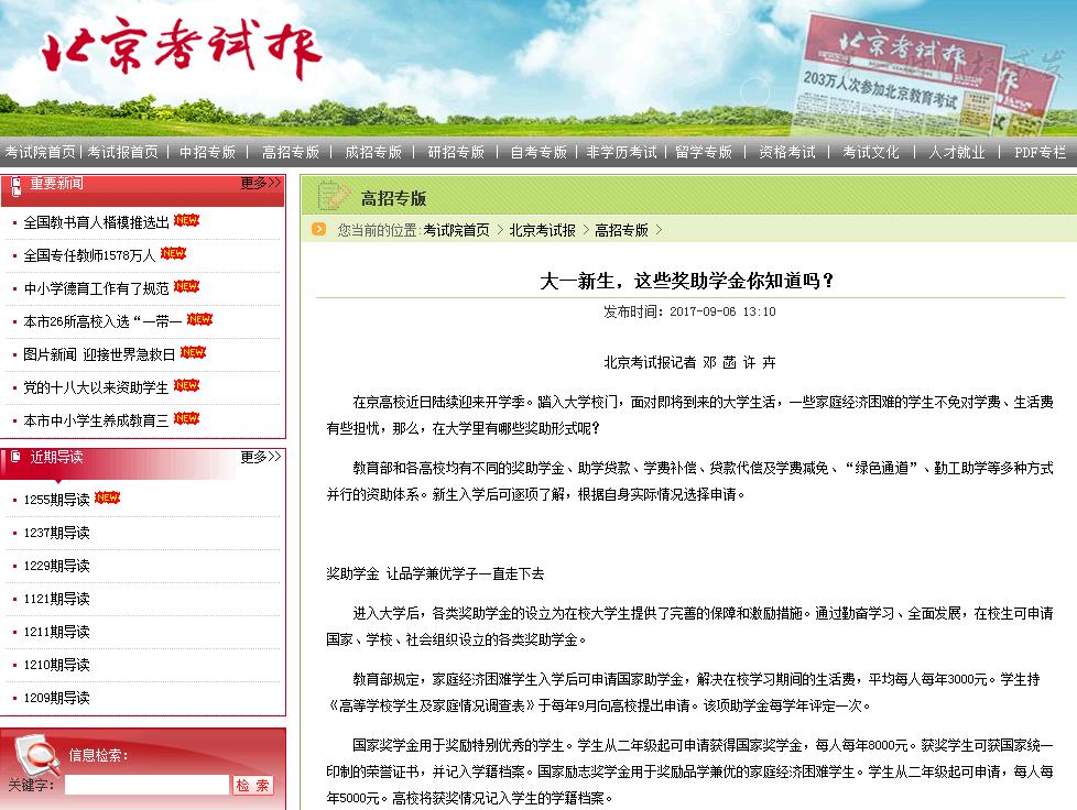 【北京考試報】大一新生,這些獎助學金你知道嗎?